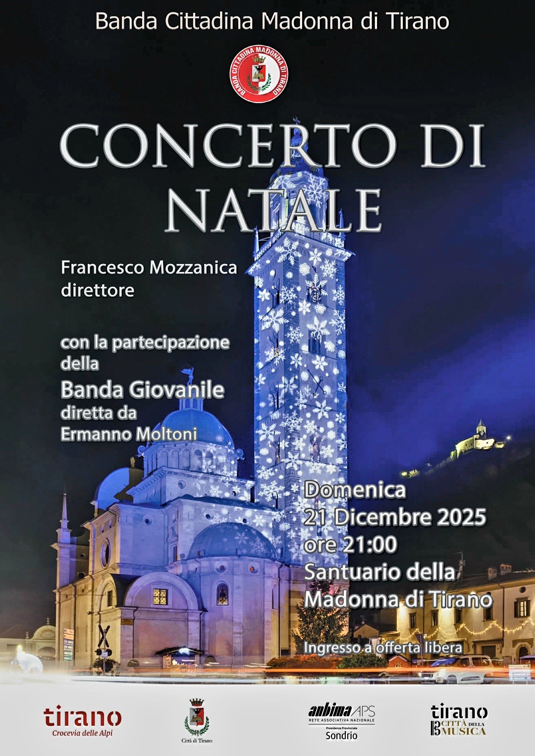 Ci stiamo avvicinando sempre più al Natale e la Banda Cittadina Madonna di Tirano vi offrirà anche quest’anno il tradizionale Concerto di Natale all’interno del meraviglioso Santuario della Madonna di Tirano. L’appuntamento è per domenica 21 dicembre alle ore 21:00.